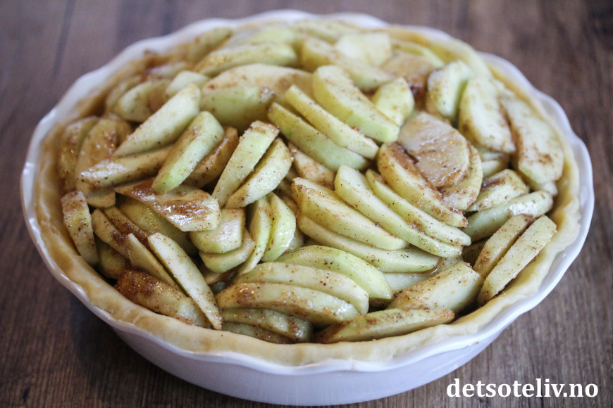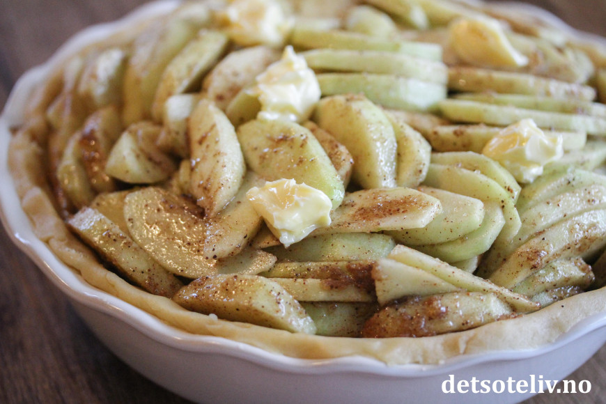 ♥ For å lage en ekte, amerikansk eplepai bør du helst anskaffe deg en ildfast paiform med høye kanter. Da sikrer du også at du får plass til det store volumet eplefyll. Bruker du springform, må du sikre at den er helt tett.
