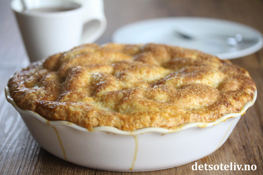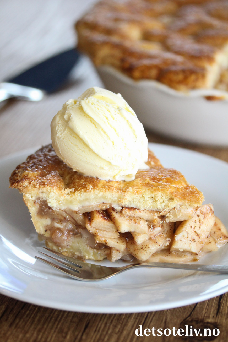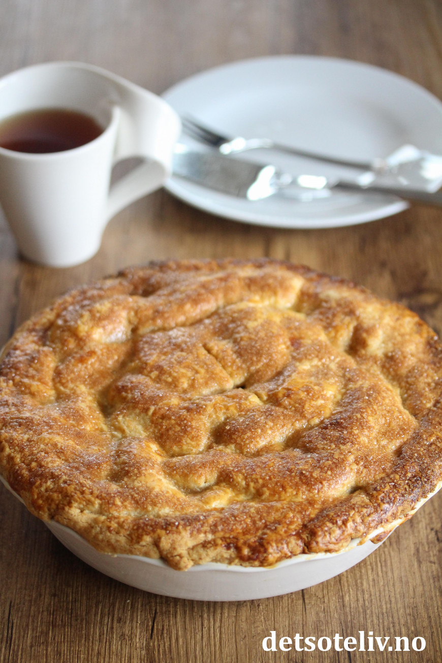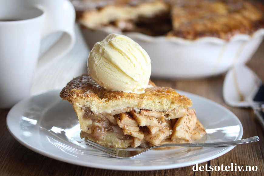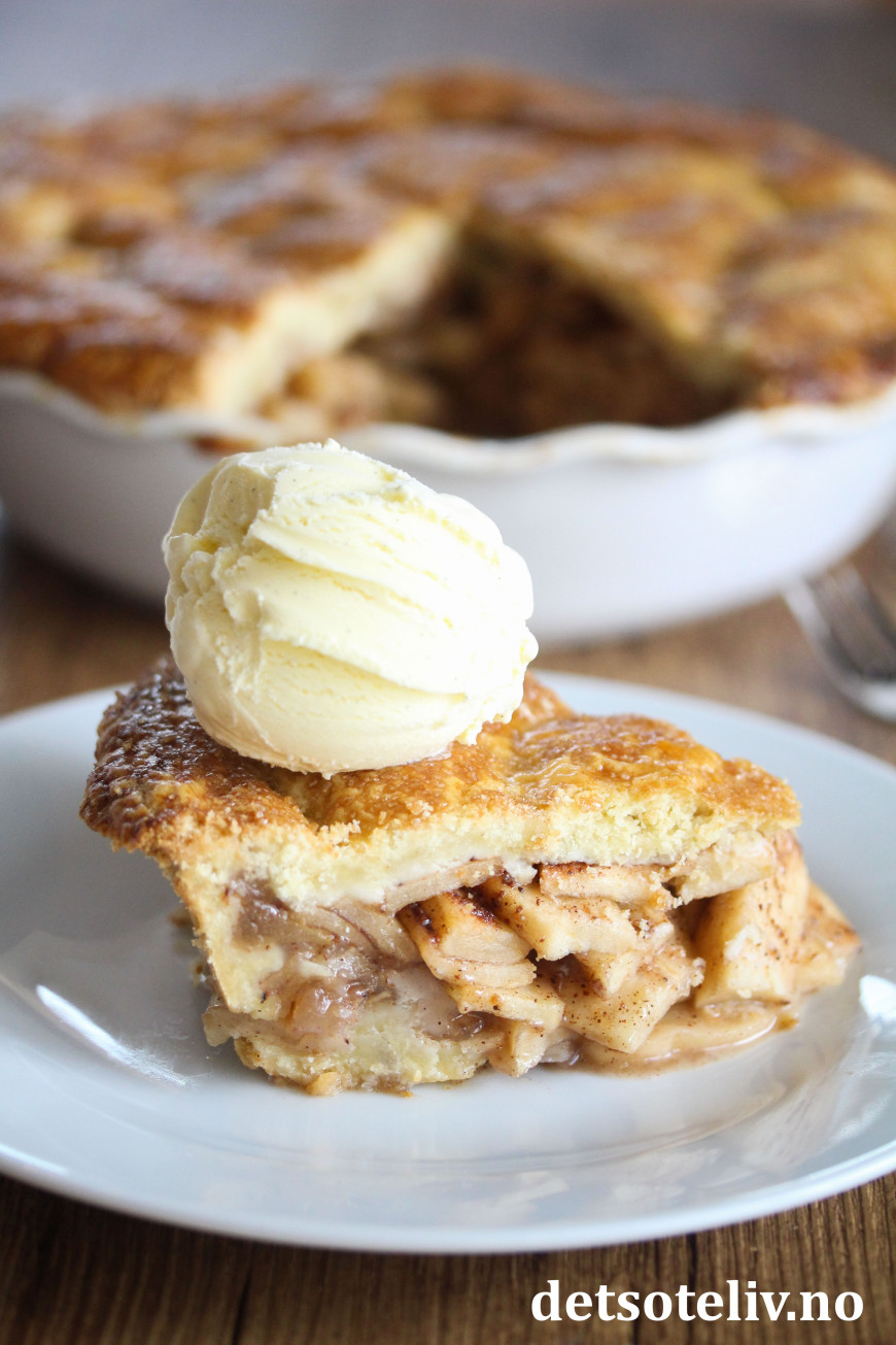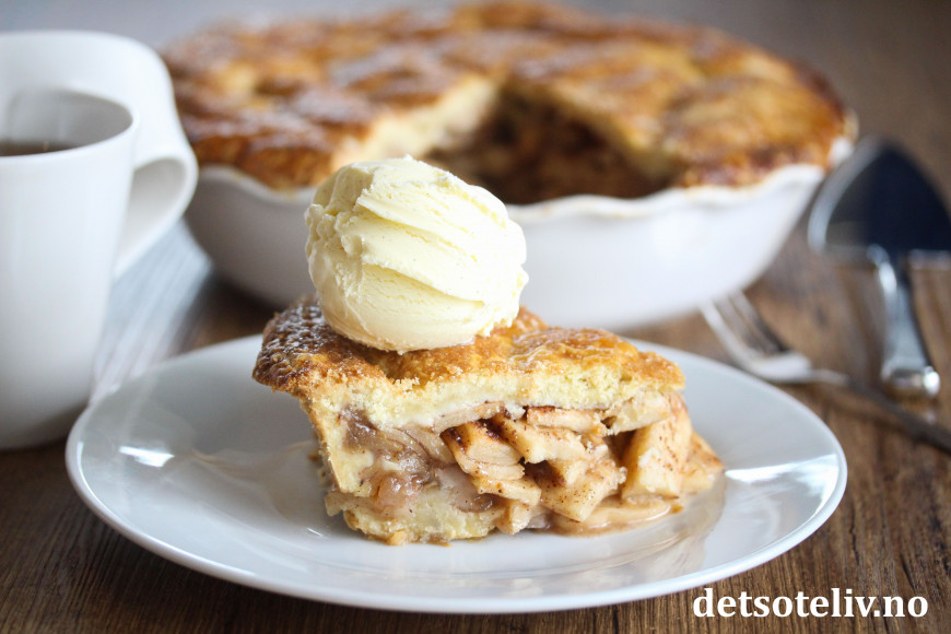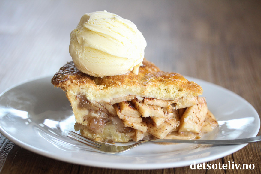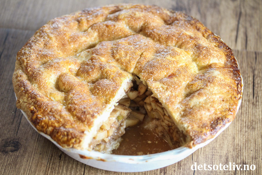 En klassisk, amerikansk eplepai består av mørdeig og et kjempetykt lag eplefyll!