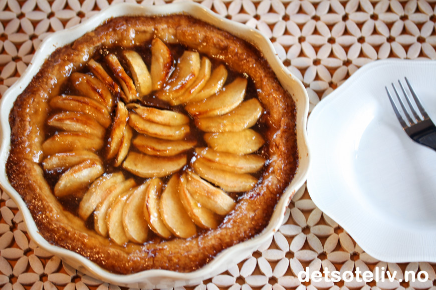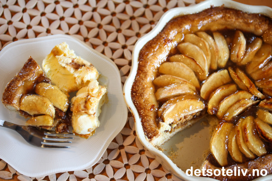 Nydelig og mettende eplekake, som jeg serverer med karamelliskrem!