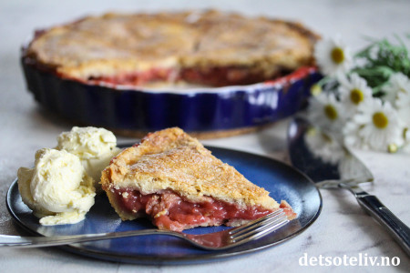 Det er lurt å steke paien på stekeplate og ikke rist, fordi det kan dryppe litt av formen.