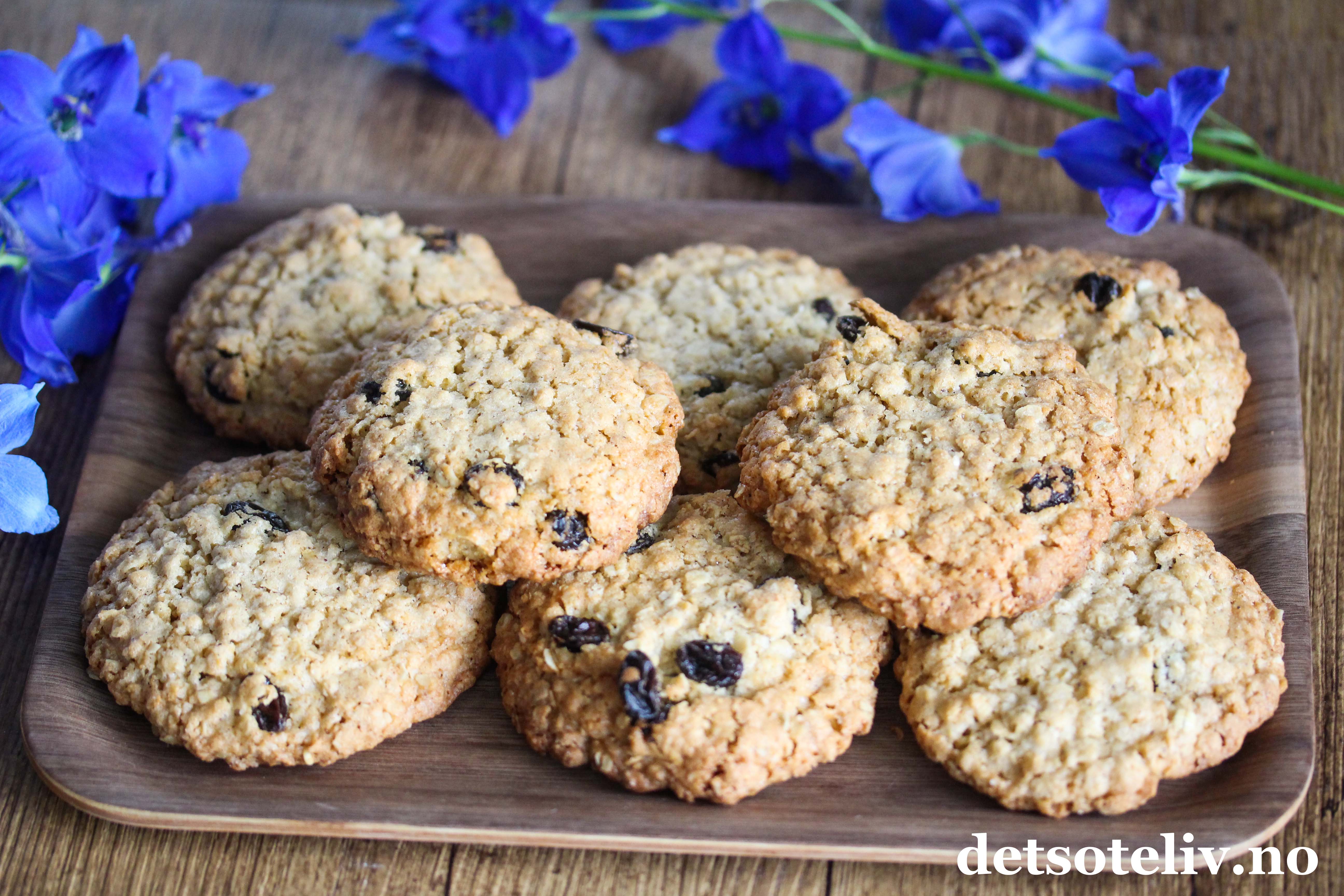 "Oatmeal Raisin Cookies" er store, myke, deilige cookies med havre og rosiner.
