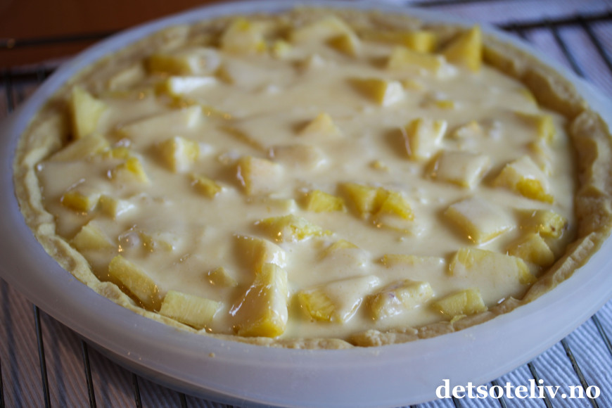 Her har du en nydelig ananaspai som virkelig myker opp i vinterværet! Den tropiske smaken av ananas smaker helt perfekt sammen med den gode mørdeigsbunnen og det kremete fyllet.