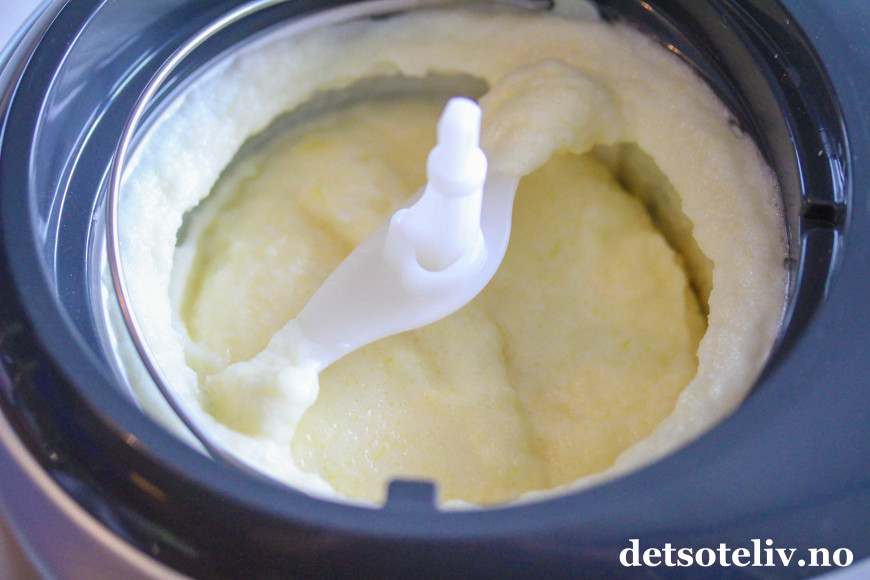 La maskinen gå i 50-60 minutter til du får en myk og deilig ananassorbet.