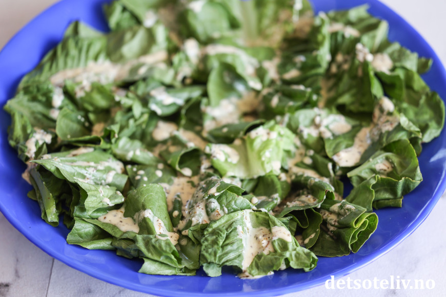 Ha over godt med dressing (det du ikke bruker i salaten, serveres ved siden av).