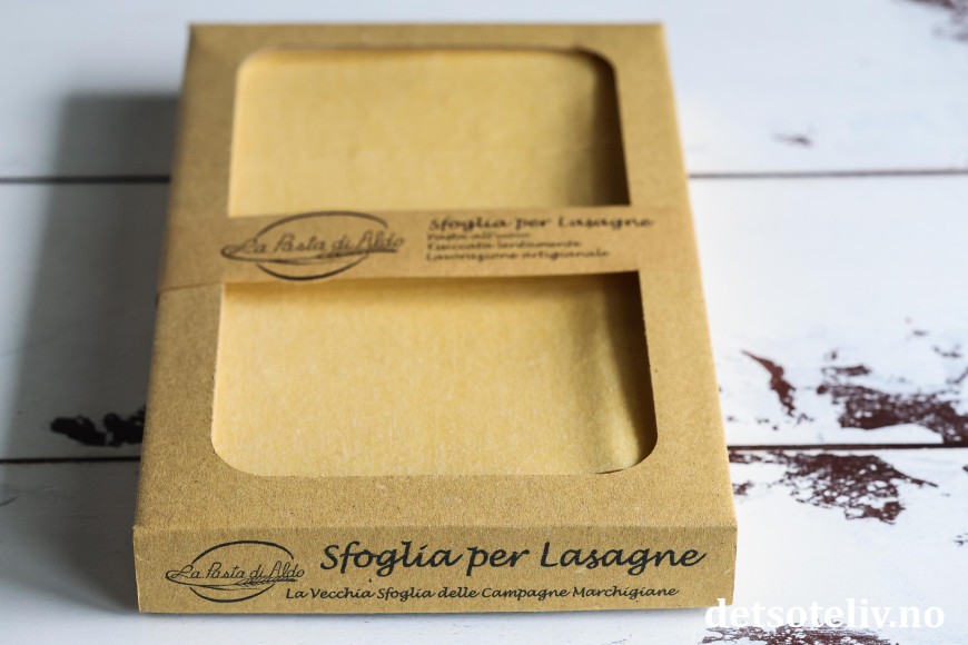 ♥ Jeg brukte her disse lasagneplatene, som var litt ekstra store, så jeg brukte da 2 stk per porsjon. Bruker du mindre lasagneplater (som er mest vanlig), passer det med 3 lasagneplater per porsjon.