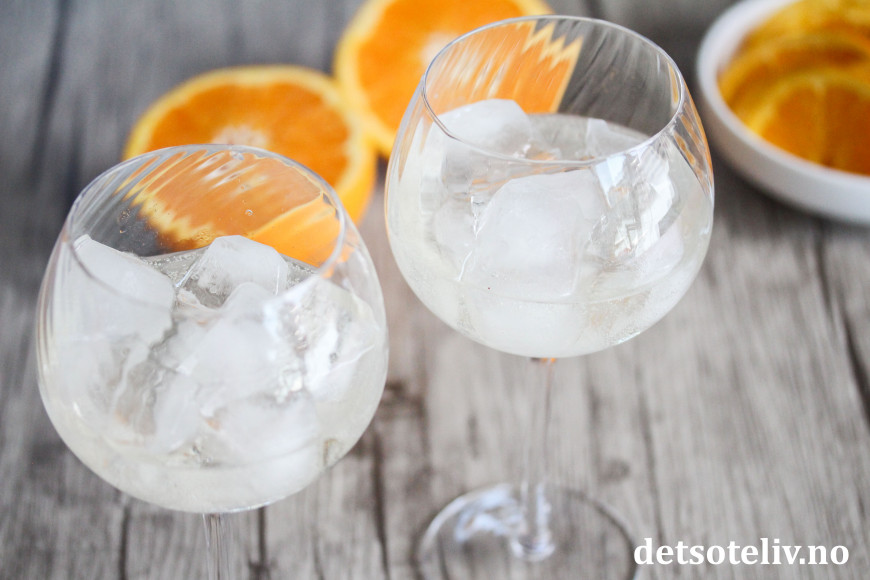 Jeg synes det er viktig med masse isbiter og kalde, saftige appelsinskiver i drinken, som bidrar til sødme og deilig smak.