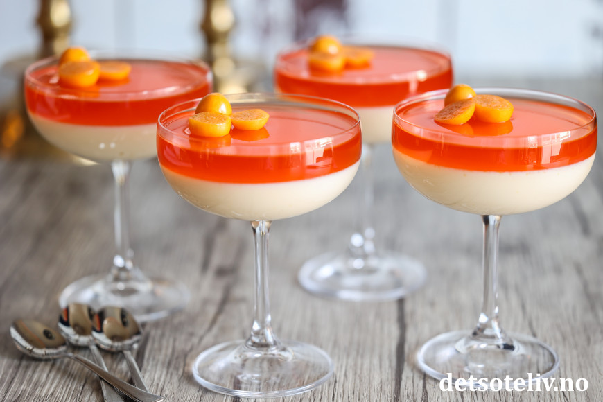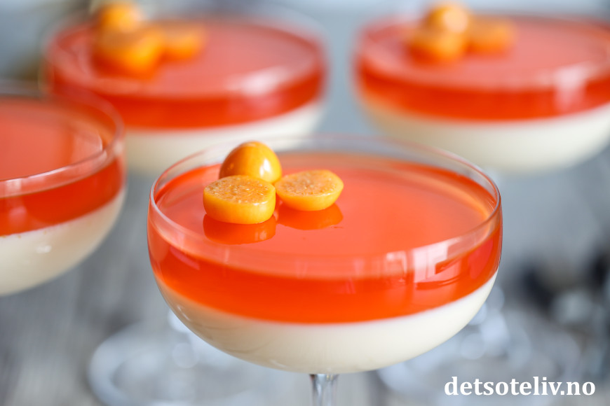 Både geléen og panna cottaen får myk konsistens.