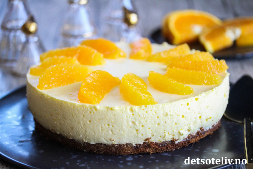 I julen er appelsinene på sitt beste! Bruk dem til å lage denne nydelige fromasjkaken, som består av myk vaniljekakebunn og superluftig appelsinfromasj.