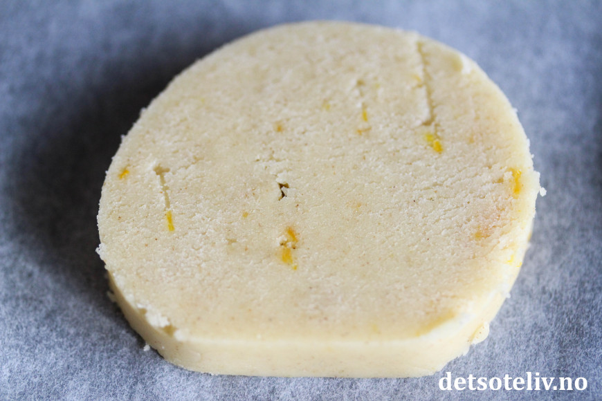 Form deigen til ruller (ca. 5 cm i diameter). Legg rullene i kjøleskapet i 1 time, så de blir faste.