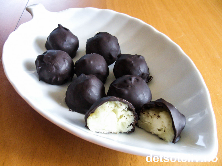 Sett brettet med konfekten i kjøleskapet til sjokoladen har stivnet.