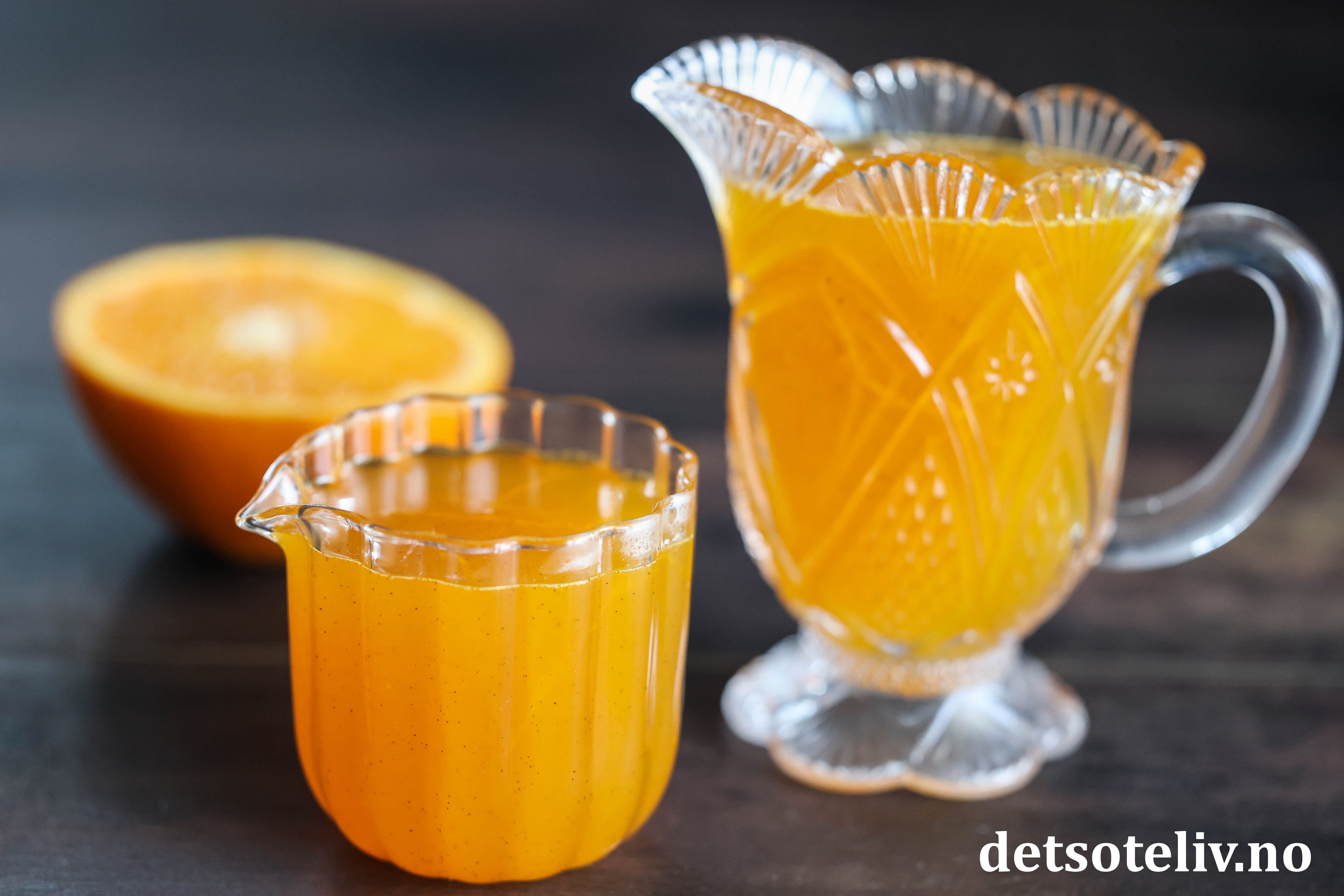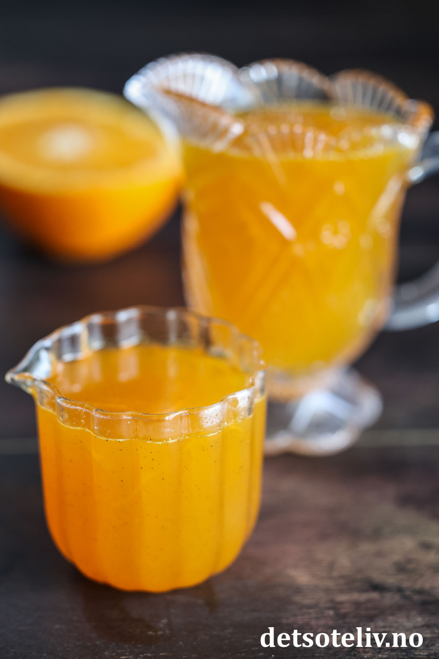 Deilig appelsinsaus med vanilje er nydelig å servere til mange slags desserter!