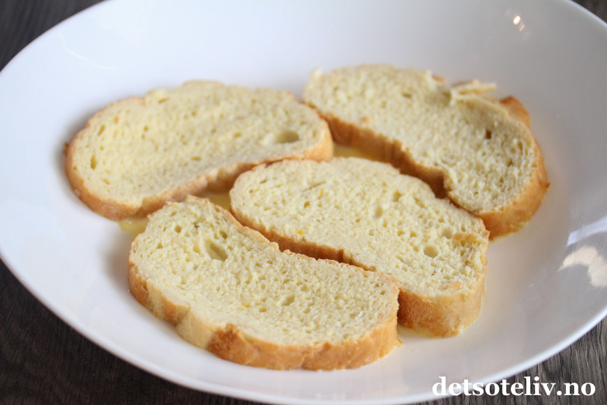 ♥ Det går fint å bruke daggammelt brød. Selv om loffen er tørr, vil loffskivene bli myke igjen når de bløtlegges.