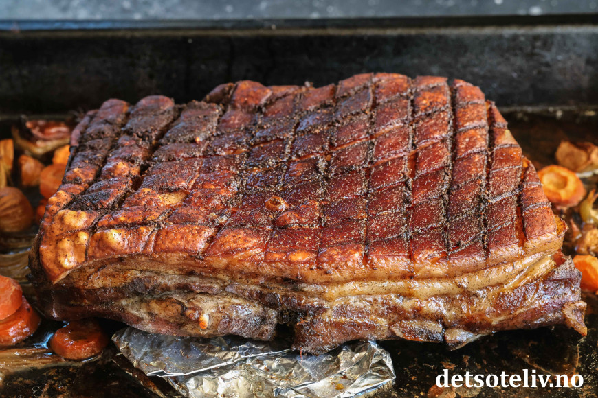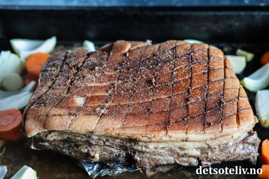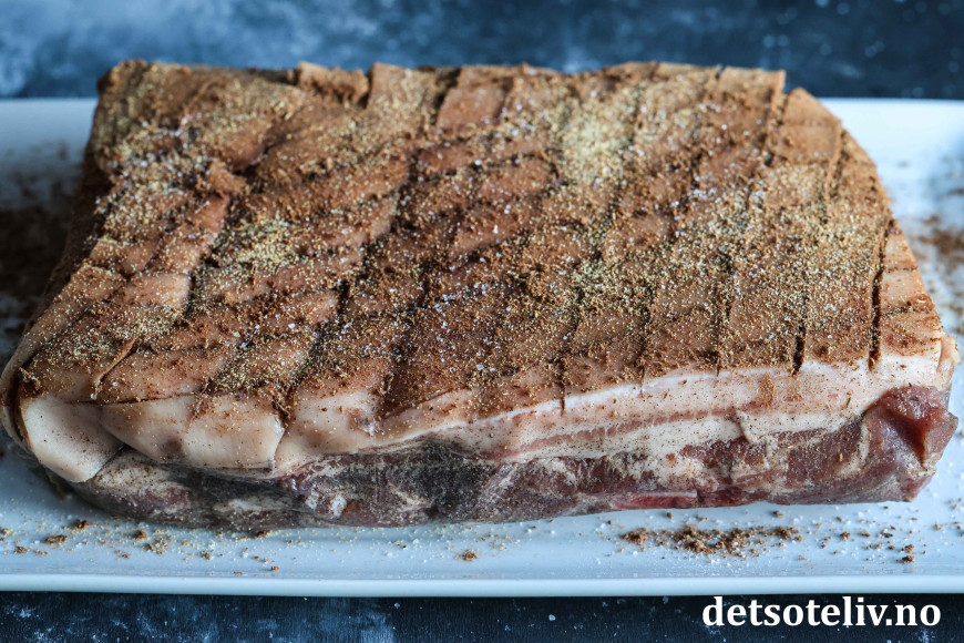 Bortsett fra at krydderet er annerledes, bruker jeg samme fremgangsmåte som når jeg steker klassisk ribbe (se Julens beste ribbe med sprø svor).