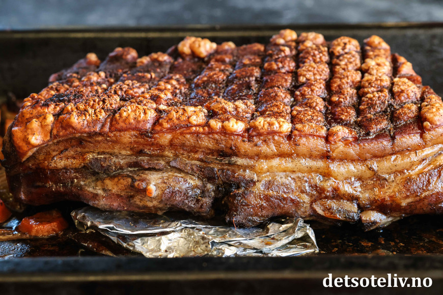 Hvis du etter disse 20 minuttene fortsatt synes at svoren ikke er helt sprø, kan du sette på grillelementet på ovnen og steke ribben i ca. 5–10 minutter til (følg ekstremt nøye med så svoren ikke blir brent).