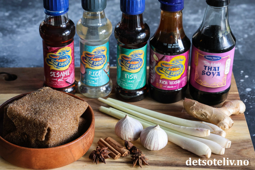 ♥ Kinesisk five spice fås kjøpt i de fleste store, norske matbutikkene. Det samme gjelder ingrediensene til sausen.