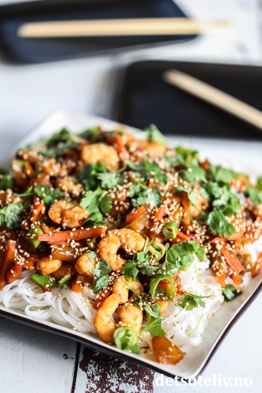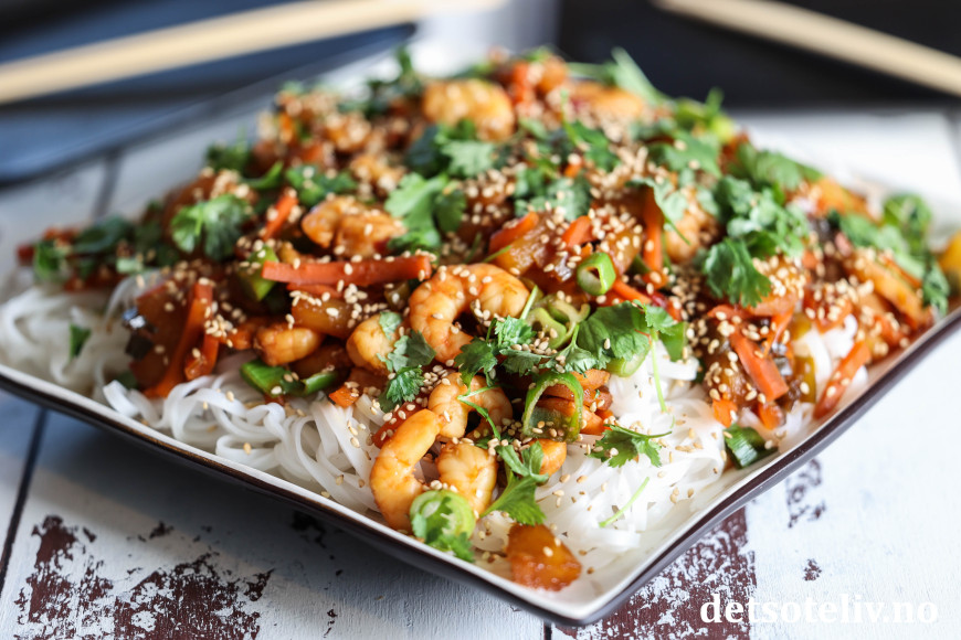 Risnudler med store, marinerte scampi er og blir en favoritt! 😋