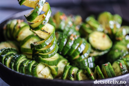 Disse asiatiske spiralagurkene har blitt populære i sosiale medier, og det er lett å forstå hvorfor, for disse agurkene er både artige å se på og veldig gode på smak!