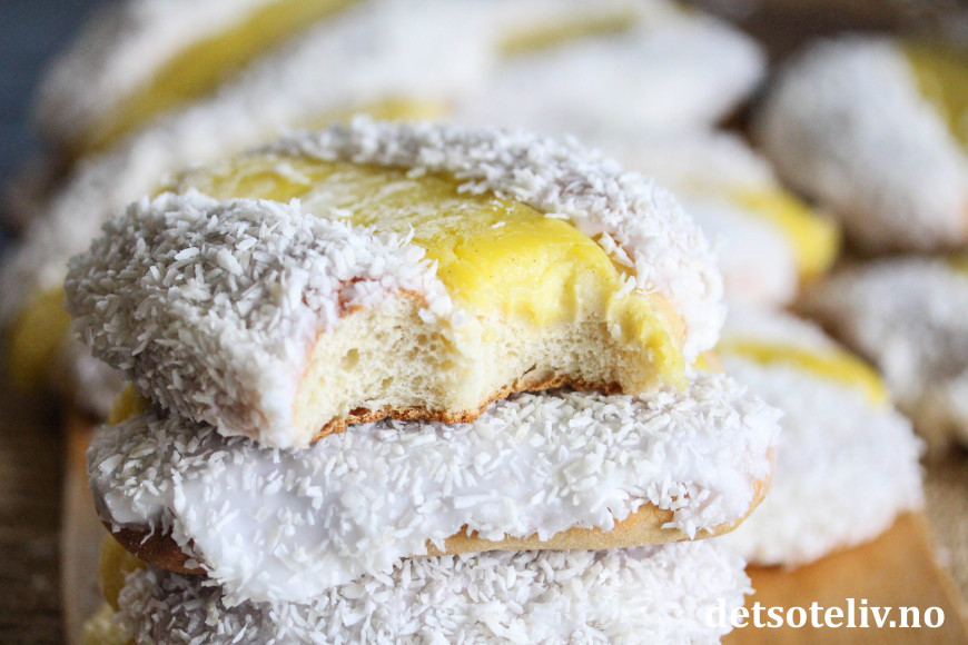 ♥ Skolebrød er best å fryse uten melisglasur og kokos fordi melisglasuren ellers kan skalle av (- men jeg fryser dem ofte selv likevel og synes det går helt fint 😉 ).