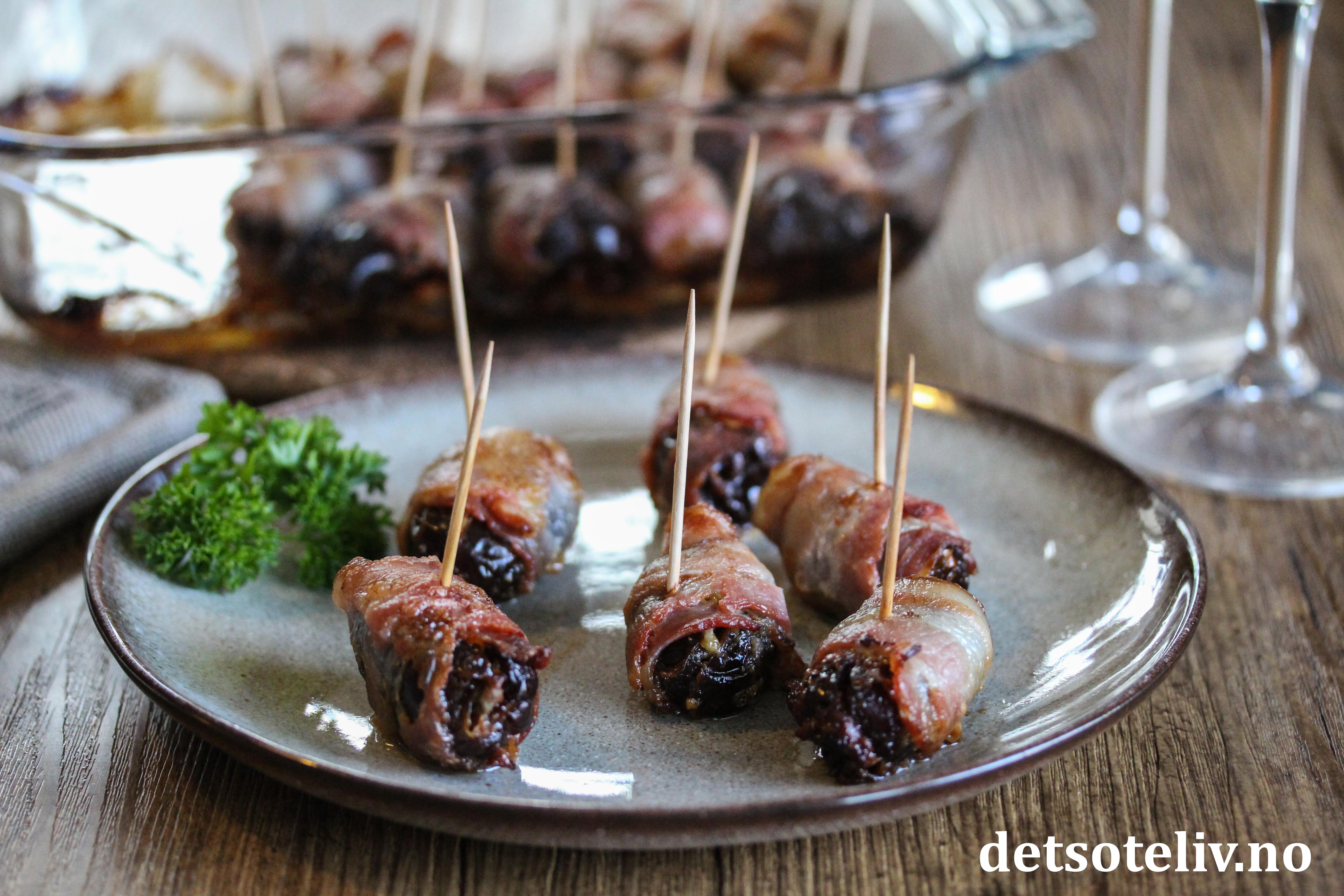 Bacondadler er populære å servere som appetittvekkere sammen med velkomstdrinken, eller som en av mange småretter på tapasbordet!