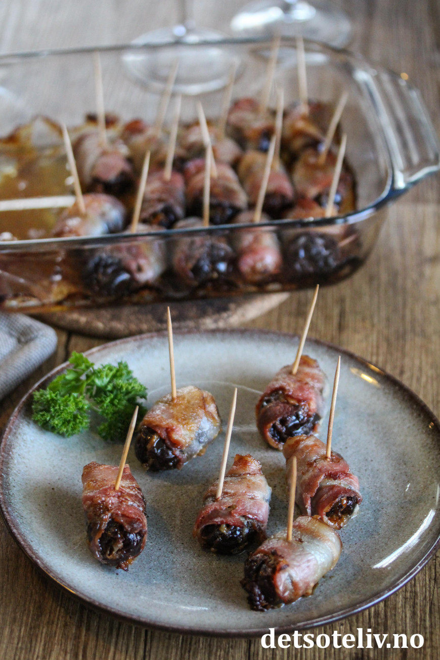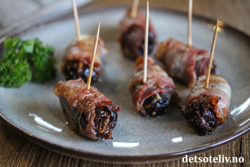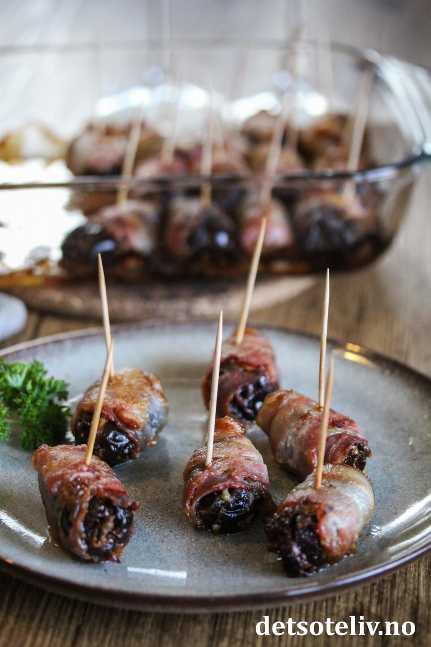 "Drunken Devils on horseback" får du om du lar dadlene ligge en stund i brandy før du fyller dem. 😊