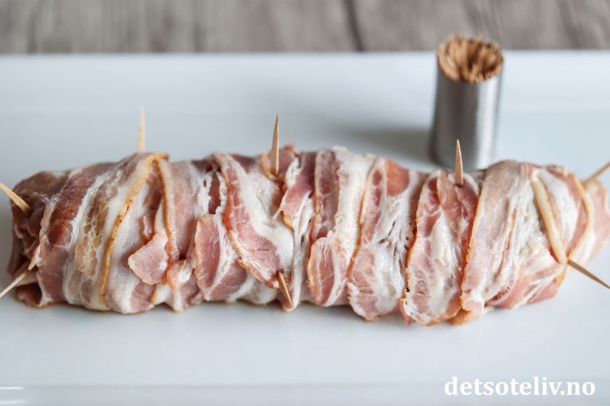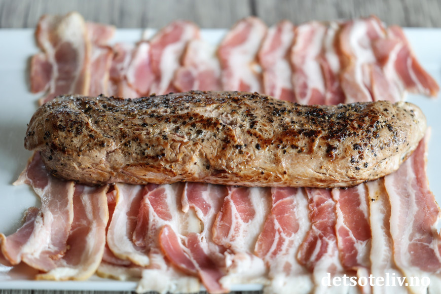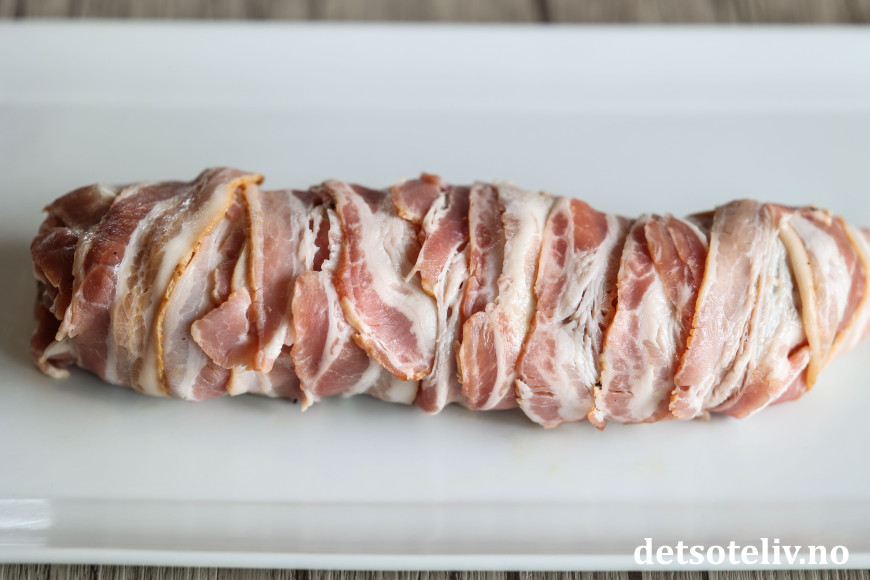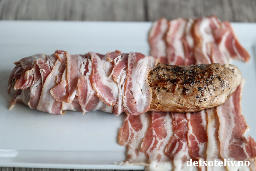 Svinefilet som surres inn i bacon blir ekstra saftig og smakfull! 😃