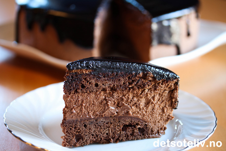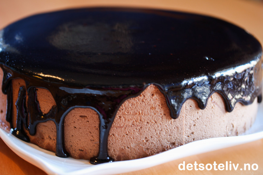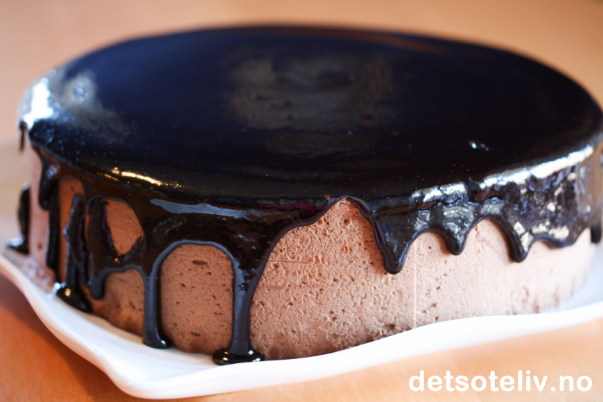 Sett kaken i kjøleskapet i noen timer. Glasuren vil da stivne og kaken tiner så den får moussekonsistens.