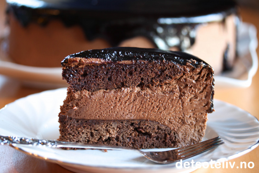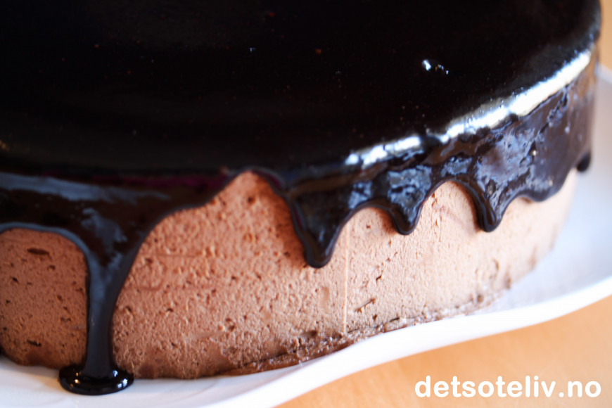 ♥ Selv om dette ikke er en iskake, bør kaken fryses før den glaseres. Det gjør at glasuren stivner raskere oppå kaken. Etter at kaken har stått i kjøleskapet i noen timer tiner deg så den får den riktige moussekonsistensen som den skal ha.