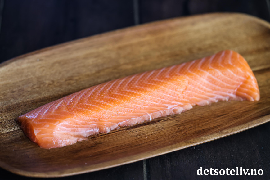 ♥ Jeg bruker her ren ryggfilet av laks (back loin), som har veldig god kvalitet.