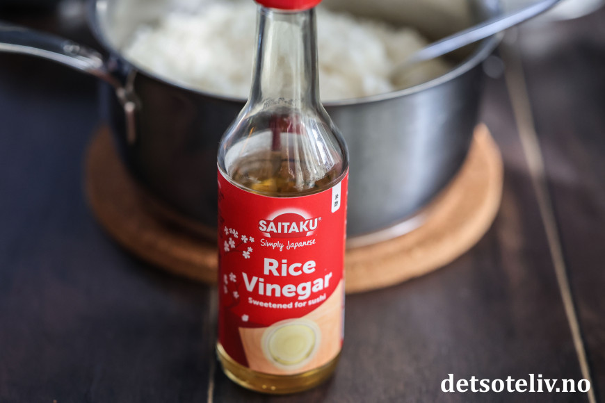 Rør sammen riseddik og sukker (eller bruk ferdig søtet riseddik).