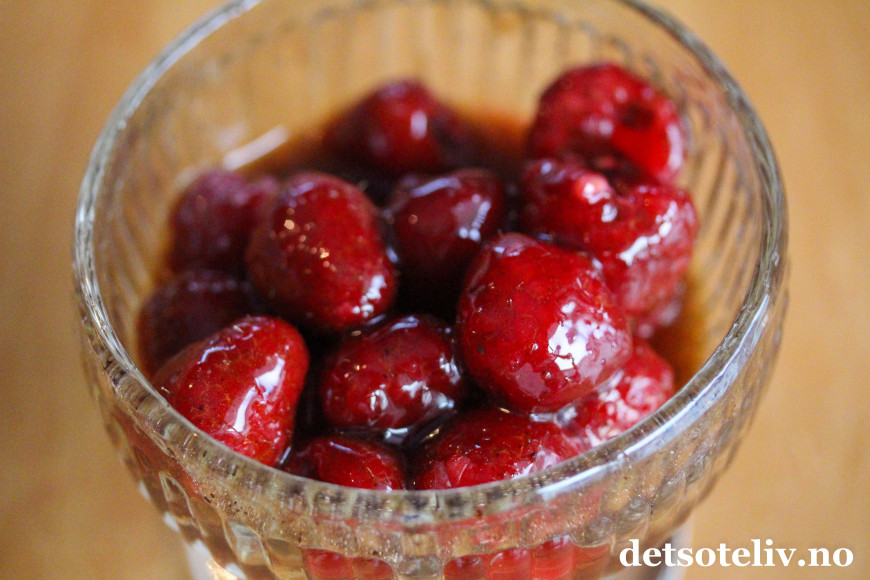 Honningmarinerte bringebær og ristede pinjekjerner: