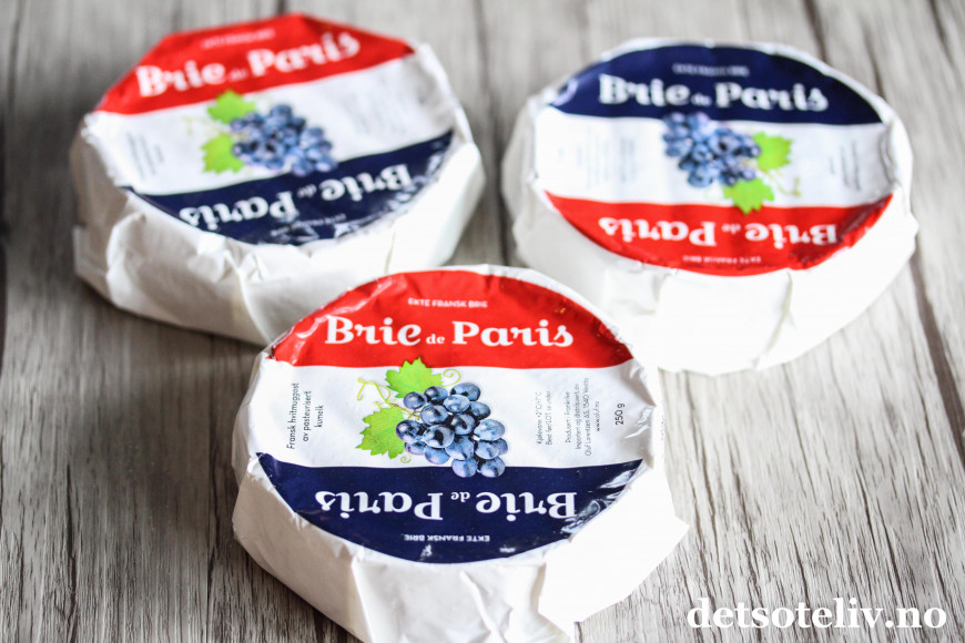 ♥ Som sagt har jeg her brukt osten Brie de Paris, som blant annet fås kjøpt hos Meny, Coop Mega, Rema 1000, Kiwi og Joker. Osten finnes både i stor størrelse på 500 g og i mindre størrelse på 250 g, som jeg har brukt her.