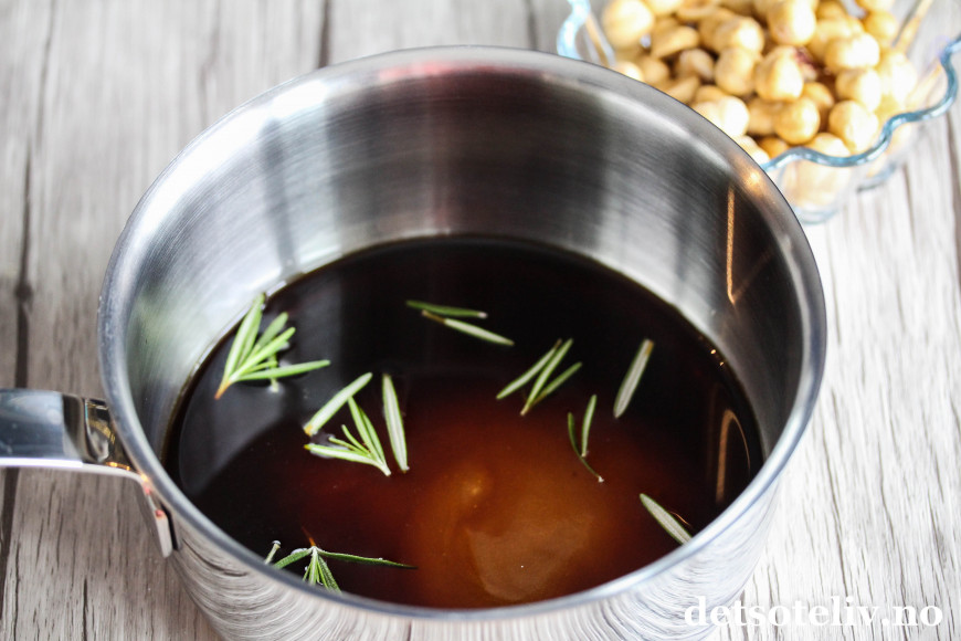 Imens lager du sausen ved å ha eddik, honning, litt rosmarin og en klype maldonsalt i en kjele.
