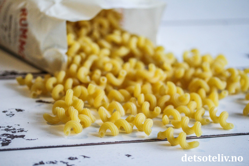 ♥ Jeg brukte her spiralformede pasta (kalles ofte cavatappi eller cellentani som betyr "korketrekkere" på italiensk eller riccioli som betyr "krøller"), men i denne retten kan du bruke pasta og spagetti i alle slags fasonger og varianter. Merk at 400 g er tørrvekt før koking.