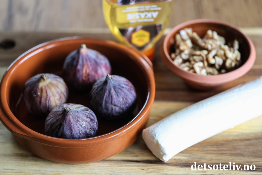Stek fikenene midt i ovnen ved 200°C i ca. 10 minutter.