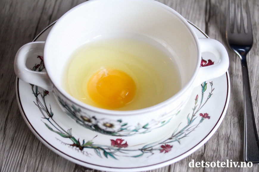 Finn frem en skål som tåler varme. Knekk i et egg.