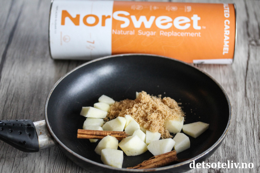 Ha i så fall eplebiter i en liten stekepanne sammen med NorSweet Salted Caramel og kanel.