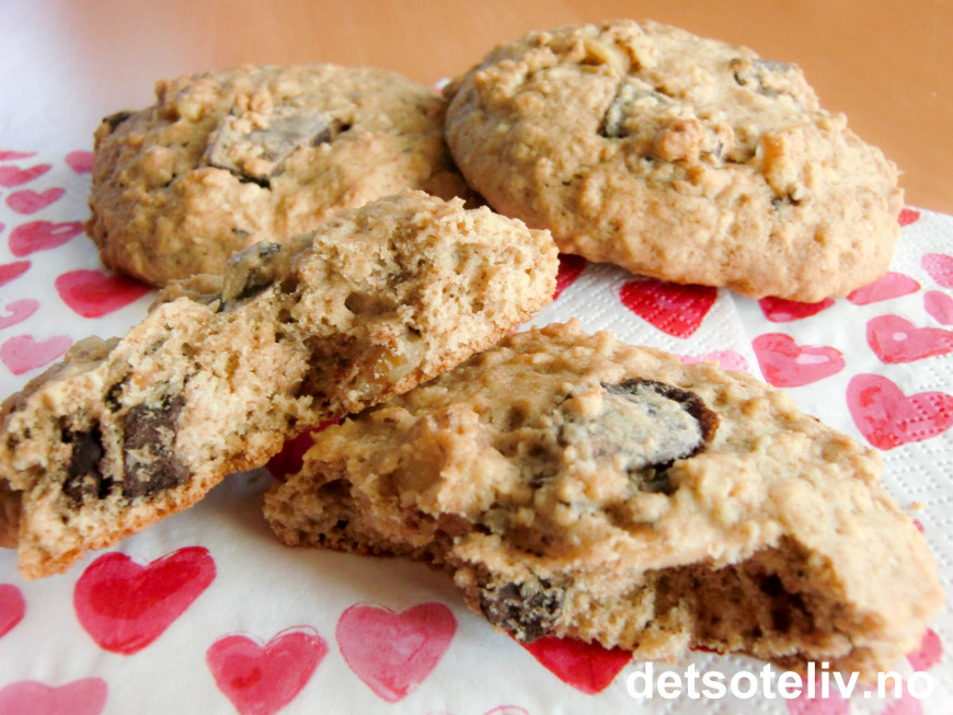 Her har du en spennende cookiesoppskrift som inneholder både most banan, valnøtter og store sjokoladebiter.