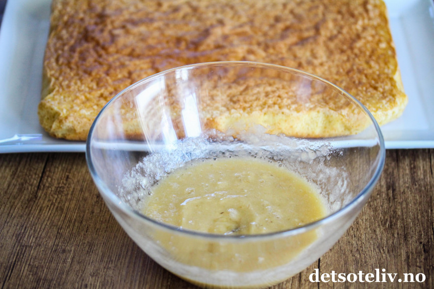 Mos 2 bananer med en gaffel og fordel bananmosen over kakebunnen.