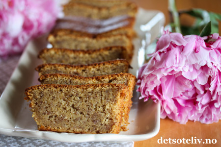 Banankaken er søt og veldig saftig. Lite fett i deigen gjør kaken til en veldig fin hverdagskake. Elsket av barn!