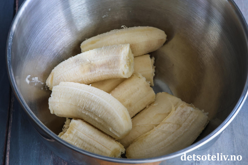 Mos bananene (jeg bruker stavmikser til dette).