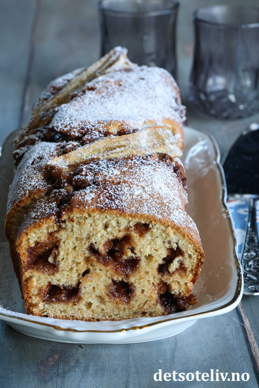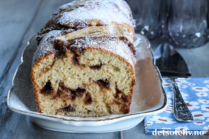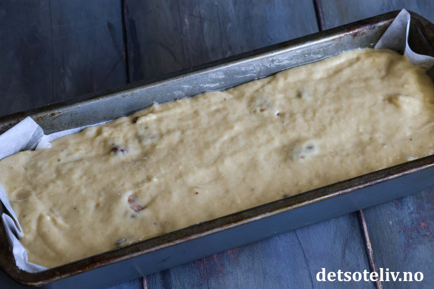 Fordel deigen i en smurt, avlang brødform (1,5 liter) som er dekket med bakepapir i bunnen.