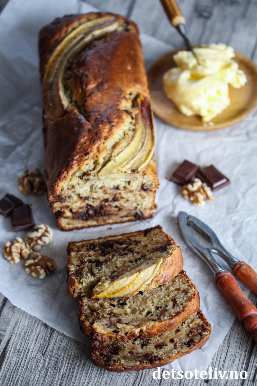 Har du noen brune bananer på kjøkkenbordet, er du skikkelig heldig, for da kan du bake verdens deiligste bananbrød!