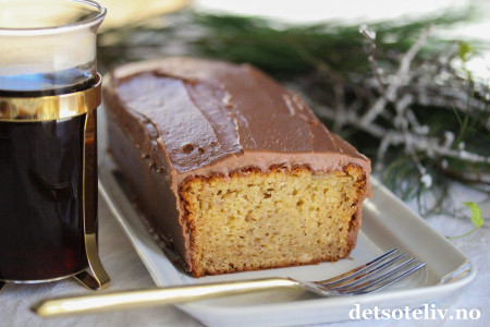 En enkel, men svært saftig og god banankake kan gjøres ekstra populær hvis den dekkes med deilig sjokoladeglasur!