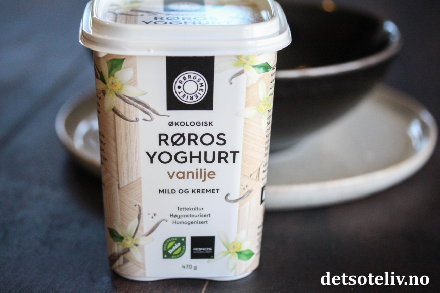 Jeg liker kjempegodt å spise banangranola sammen med vaniljeyoghurt og friske blåbær!