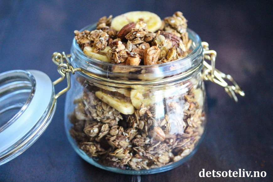 Denne banangranolaen gir deilige, sprø og store granolabiter!