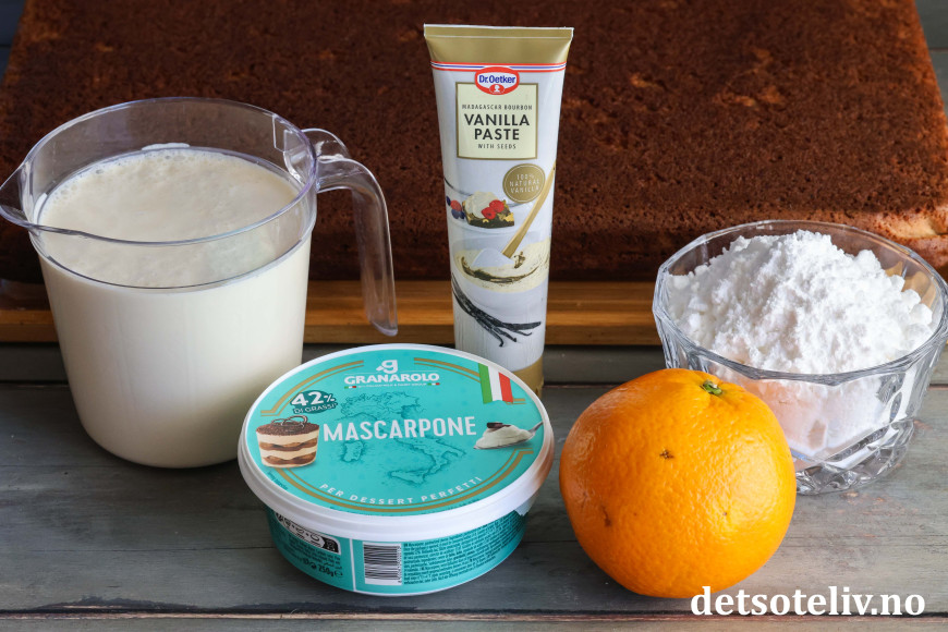 ♥ Det er viktig at kaken er helt avkjølt før du dekker den med mascarponekremen, ellers kommer mascarponekremen til å smelte og bli rennende.