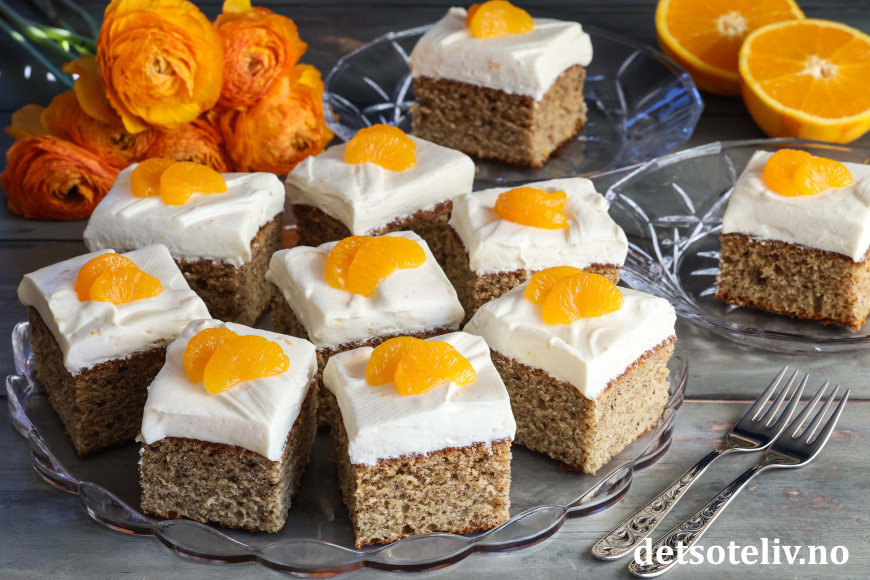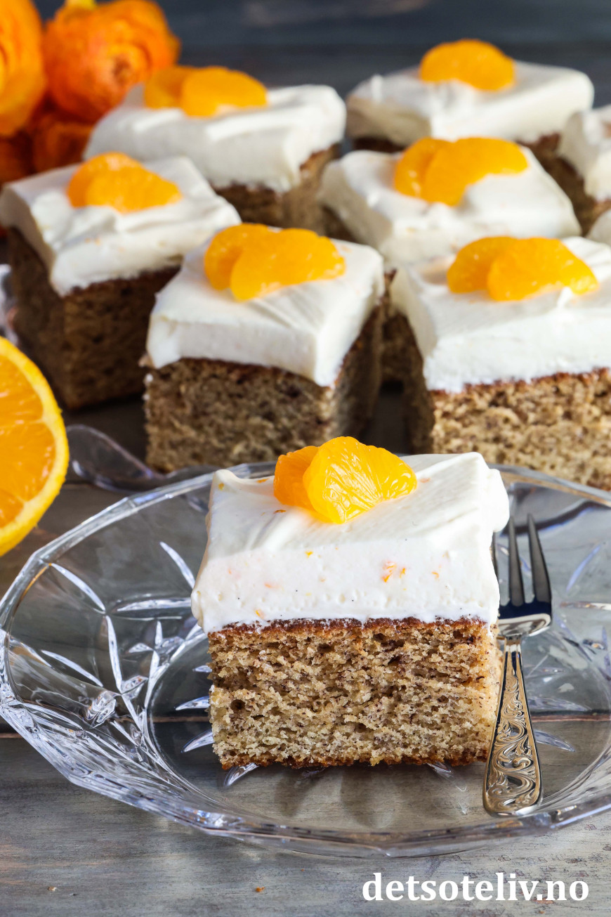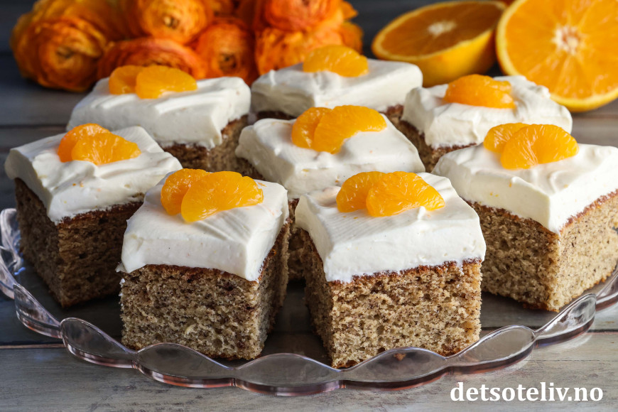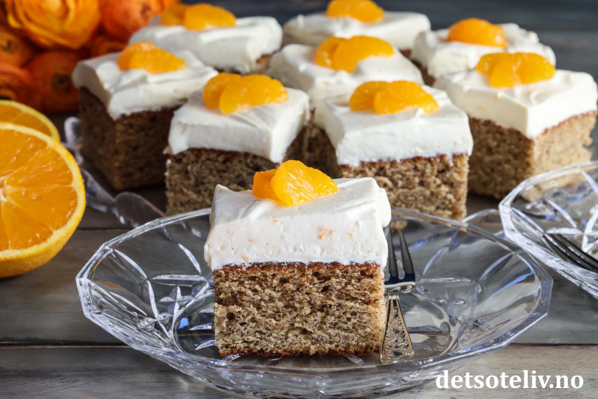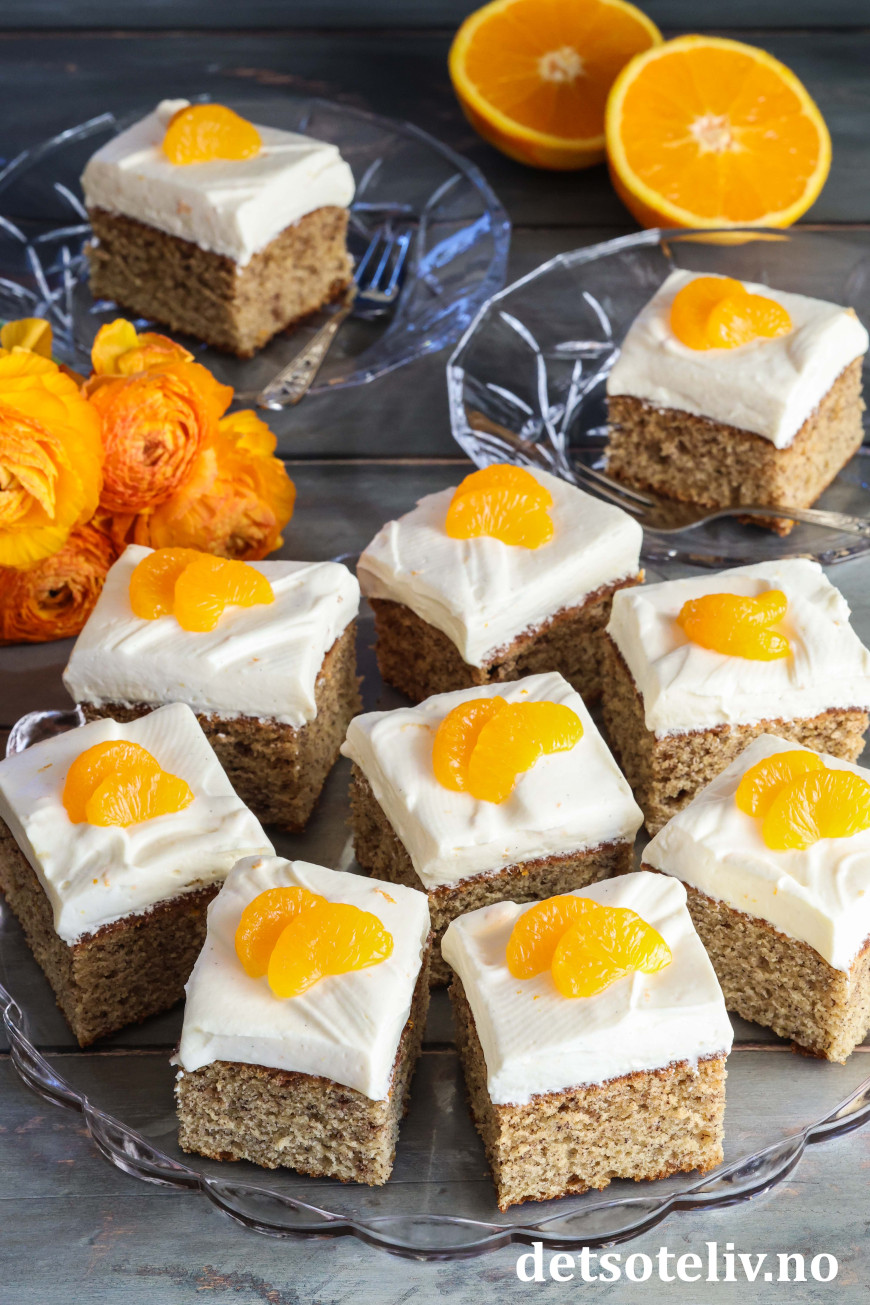 La hermetiske mandariner renne godt av seg i en sil. Pynt hvert kakestykke med et par mandarinbåter.