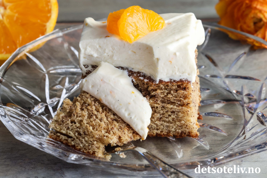 ♥ Kaken kan fryses uten mascarponekrem, men er ikke like godt egnet til frysing etter at den er pyntet med mascarponekrem og mandariner. Mascarponekremen kan bli litt kornete og rennende ved tining.
