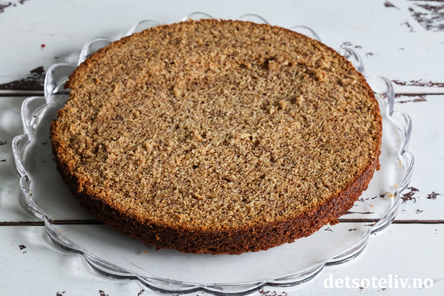 ♥ Tilpass steketiden på kaken siden ovner kan variere. Sjekk med kakenål at kaken er helt gjennomstekt i midten før du tar den ut av ovnen. Dersom du synes at kaken blir for mørk på overflaten, kan du dekke over kaken med et stykk bakepapir eller aluminiumsfolie på slutten av steketiden.
