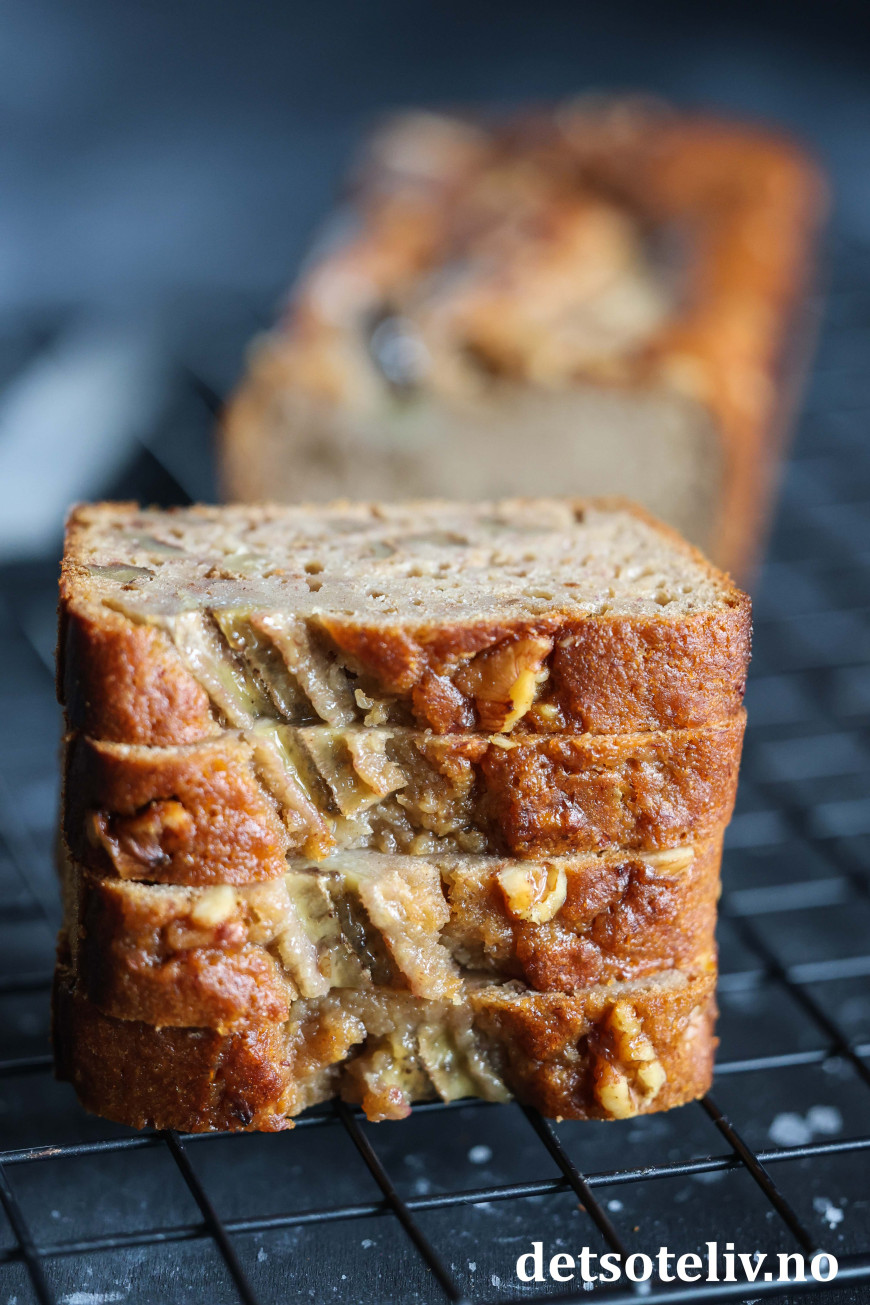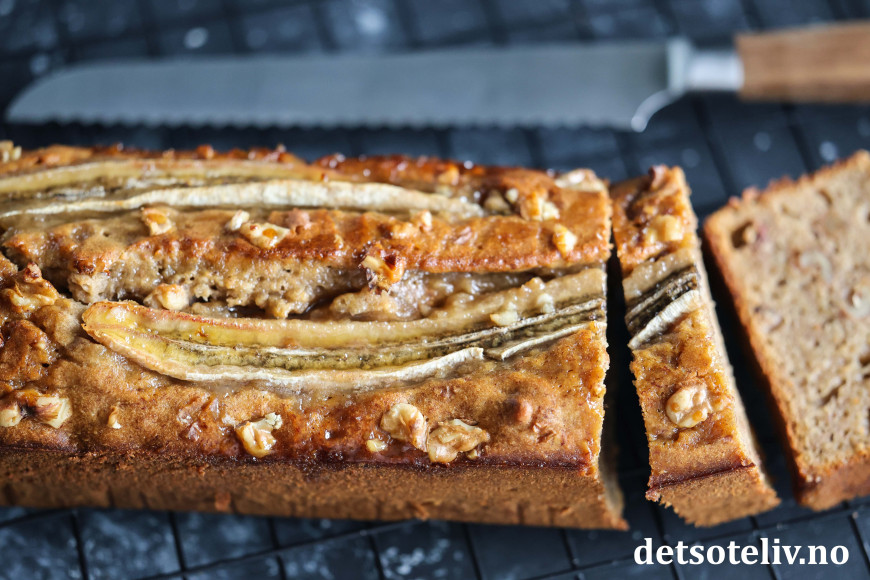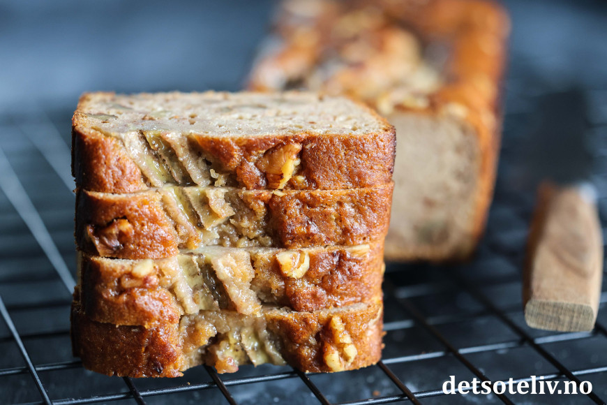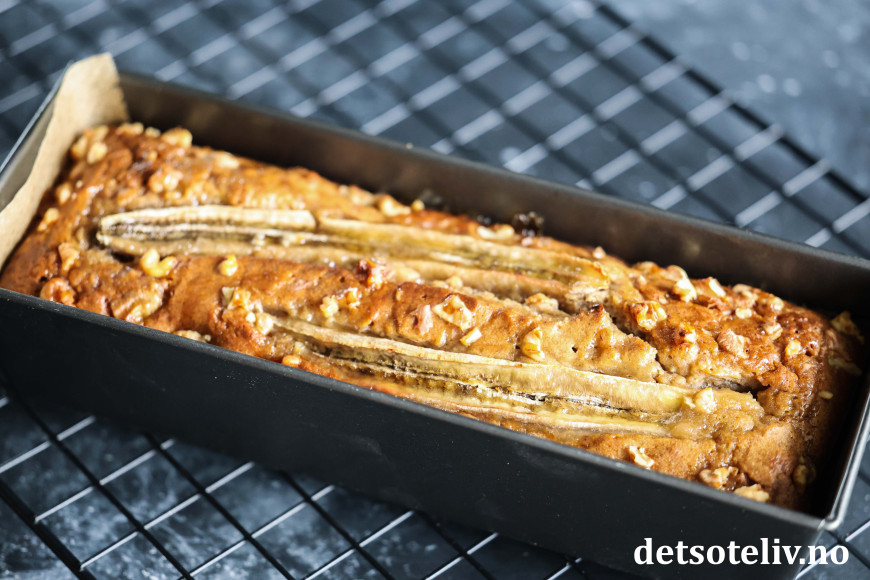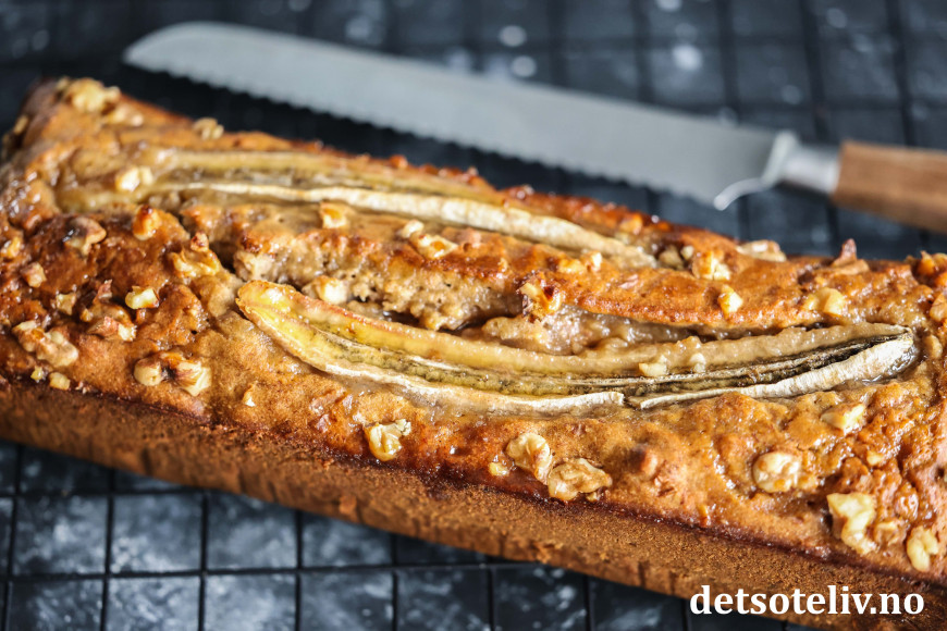 Her kommer et tips om en lun og deilig banankake med honning og valnøtter, som passer godt til regnfylte høstdager.